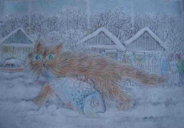— Хорошо, — согласилась белая медведица и стала рассказывать про рыбу: — В далёком тёплом море, где нет льдин, живёт печальная рыба-солнце. Она большая, круглая и плавает только прямо. И не может увернуться отлюдей-учёныхзубов рыбы-акулы. Потому и печальная.