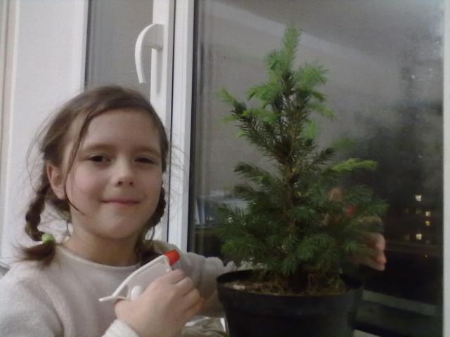 Ну, и хозяйка ёлки - тоже ;) Заботами Ритки ёлка, купленная перед Новым годом в "Ашане", растёт у нас на подоконнике. По размеру побегов можете судить, на сколько она выросла с 27 декабря. А заботами кошки, которую вы уже видели, некоторые побеги приобрели нетоварный вид!:diablo:
