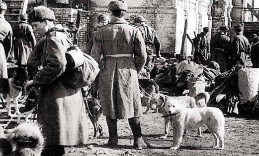 В горящем Сталинграде подчиненные старшего лейтенанта А.С. Кунина со своими четвероногими питомцами сначала действовали одновременно на трех направлениях: одна группа истребителей танков – в составе подразделений 269-го стрелкового полка, окопавшихся по улице Овражная; вторая – в составе подразделений 282-го стрелкового полка, окопавшихся у высоты 134,5, а третья прикрывала находившийся у аэродрома «Гумрак» вспомогательный пункт управления дивизии (13 сентября 1942 года здесь с помощью собак в жарком бою было уничтожено 13 атакующих средних танков противника!).