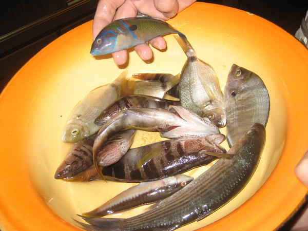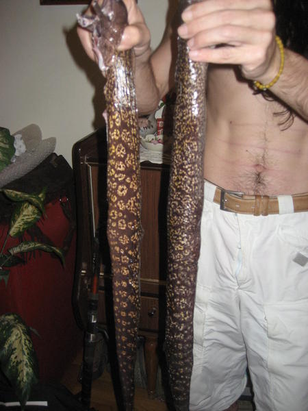 спасибо,только это далеко не все. я просто не помню где остальные фотки. где то на флешках еще есть. это второй раз что я мурен поймал,до этого тоже была только поменьше и потоньше этих. этих что бы достать пришлось тройник на струну от гитары присобачить,а то леску на морду наматывает и рвет. блииин столько крюччков мне оборвали сцуки...а рыба есть кое где и побольше этих. просто этих же не выбросишь ? к тому же их када жаришь то косточки мягкие становятся совсем,и можно целиком их есть с головой и костями. вообще рыба очень вкусная. где то еще была фотка с осьминогом,мы с Киевлянами как то тут поймали. тока не знаю где. найду-покажу.