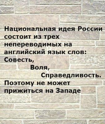 Основная мысль - "Россия не Европа, у нас другие ценности, и именно они спасут мир от пидорасов, а если нет, то и хуи с ними, а у нас своя судьба" - настолько банальна, что в нынешние времена даже и подзаебала уже переть из всех утюгов. См. В.Ложкин, "Заграница и Родина", триптих.