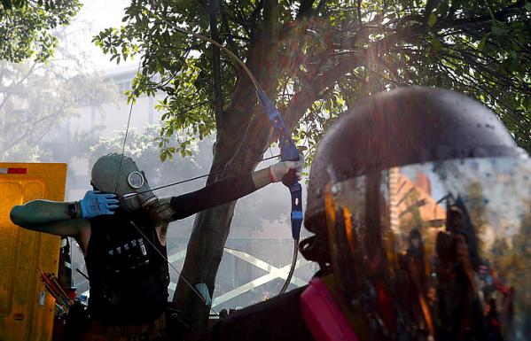 В Гонконге в ходе протестов полицейского ранили стрелой