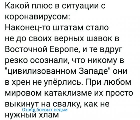Георгий не умеет делать предсказания, и что он скажет, никогда не сбывается. Тем не менее, ему отчего-то видится, как мы все просыпаемся на обломках экономики ввиду охуительных санитарных мер. 2-3 месяца ничего не будет работать, и люди не будут получать денег. Это аукнется ой как. Рухнувший бизнес, потеря множества рабочих мест, банкротство. Все охуеют, но пока некогда, у нас карантин. Кстати, а банки не хотят заморозить для населения выплаты кредитов и ипотеки на то же самое время? Ой, нет. Про это как-то забыли. Работу для туркомпаний, в перспективе работников ресторанов, магазинов, транспорта мы прикроем, а деньги они должны будут откуда-то с потолка взять. Как интересно.