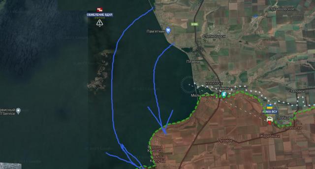 И это значит, что есть большая вероятность того, что 128 горно-штурмовая бригада пойдет в свой последний бой маршем по дну Каховского водохранилища (схему наступления привожу в изображении) по открытой болотистой местности без естественных укрытий.