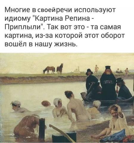 Но есть картина, которая могла бы так называться. И от которой, вероятно, происходит фраза-мем "Картина Репина "Приплыли". Вот она: