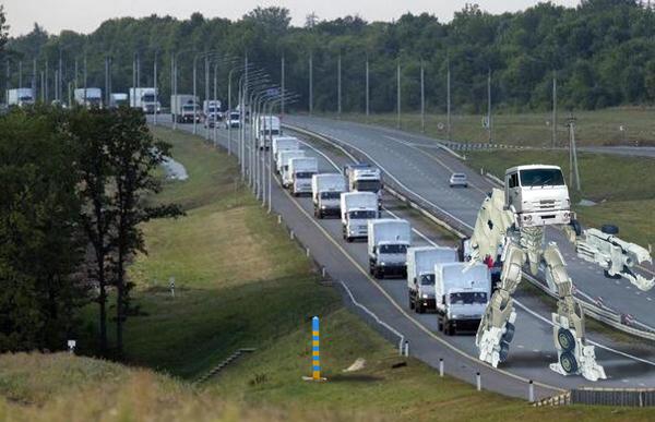 Офицер ГРУ, управляющий одним из грузовиков с "гуманитарной помощью", случайно нажал кнопку трансформации и вывел грузовик в боевой режим.