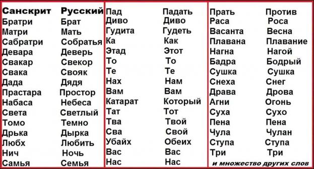 Никогда не интересовались, как звучат на санскрите названия ближних родственников? Мне даже интересно, как они это запомнили по пути из России в Индию. Потому что уже определенно, вышли то они отсюда. Вместе этими названиями, которые, исходя просто из этого факта в балтском древнее, чем в санскрите.
