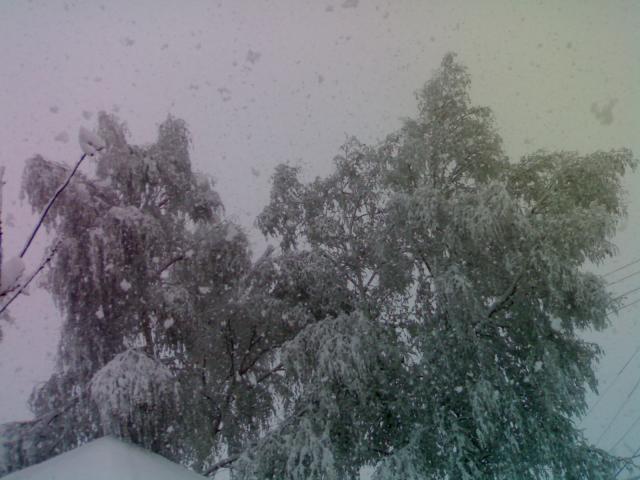 Валит, не переставая. Трясу деревья , чтобы не переломало.