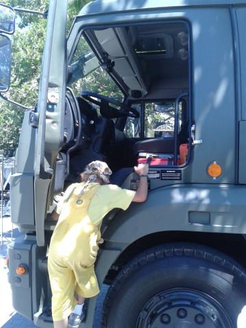 Угу, мальчишки сегодня оттягивались, эт точно... В ходовой рубке "Профессор Николай Муру" "обнюхали" все панели, посидели в командирском кресле, на "Коммуне" им разрешили покрутить штурвал. Кабины всех машин, что стояли на площади, я уже просто не считала. А еще их пустили внутрь машины комплексной водоподготовки, они между фильтрами и трубами только что по-пластунски не ползали....