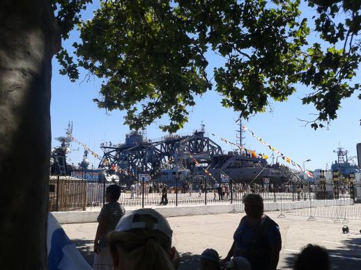 На Нахимова развернули С-300, Бастион, подогнали всякостей на базе БТРов (химимических, радио и просто), Панцирь, Т-72, Гвоздику, полевую кухню, мобильный хлебозавод, кучу оснастки различных подразделений, просто оружие на столах, пять кораблей для посещения в морпорту с демонстрацией некоторой снаряги спасов и вежливых людей с катеров ПДСС. Все можно было мацать, фотать, задавать дурацкие и умные вопросы, получать соответствующие ответы.ну и концертик с фейерверчиком.