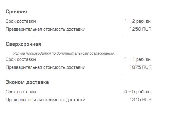Появилаь необходимость отправить небольшой груз. "Курьер Сервис Экспресс" любезно подсунул мне тарифный калькулятор, посчитал и выдал...