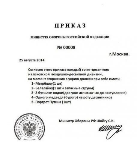 Недалеко от космодрома NASA на острове Уоллопс около побережья штата Вирджиния, где сегодня при старте взорвалась ракета-носитель Antares, была найдена вата, балалайка, бутылка из-под водки, початая банка тушёнки производства Мценского завода, намордник для медведя, инструкция по взрыву ракеты на русском языке и распечатка переговоров Безлера с Ходаковским по поводу сбитой ракеты.