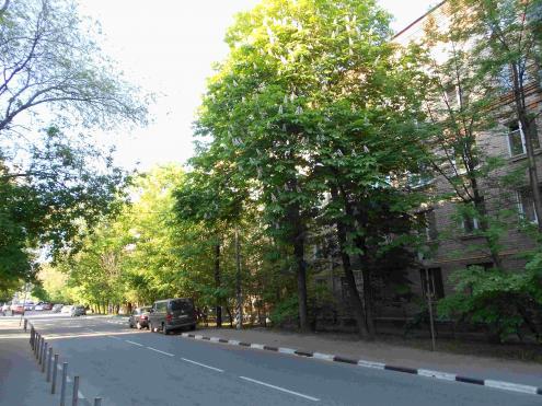 Если идти прямо по дорожке, то на противоположной стороне домов должен быть цветущий каштан..
