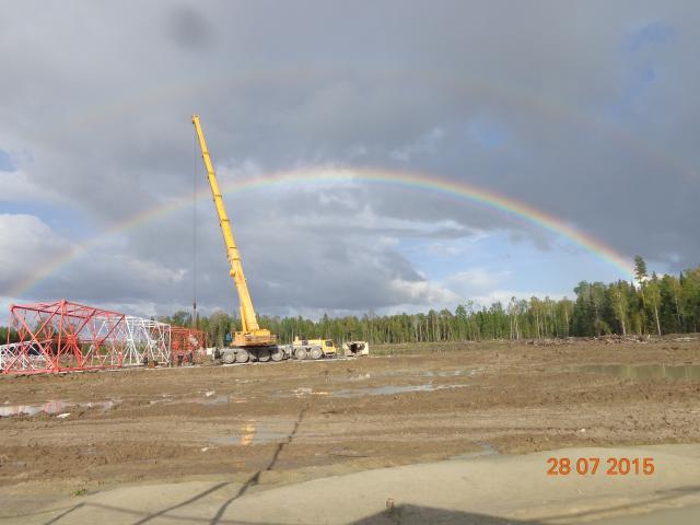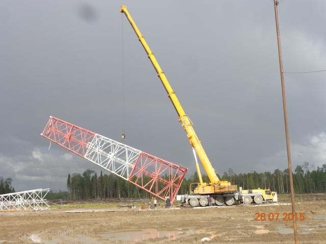 Мы тут мачту устанавливаем, чтобы связь была получше, пригнали 100 тонный краник