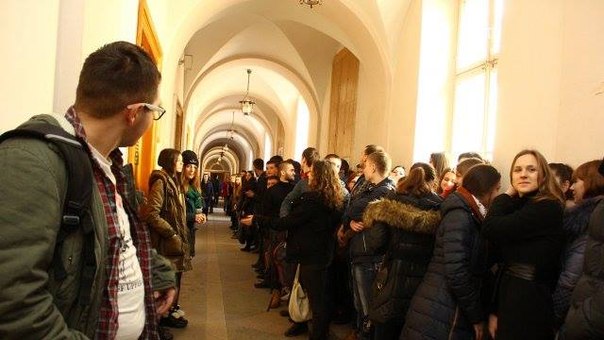 Во вторник, 24 февраля, перед лекцией доцента Загульской студенты создали «коридор позора», которым преподаватель должна пройти к аудитории. Поддержать акцию пришли студенты разных курсов, хотя в этом семестре Ольга Загульская читает лекции только у четвертокурсников".