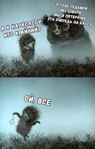 Он когда от Бабушки с Дедушкой ушел, он жил сначала с Зайцем, потом с Ежиком, потом со всеми по очереди...