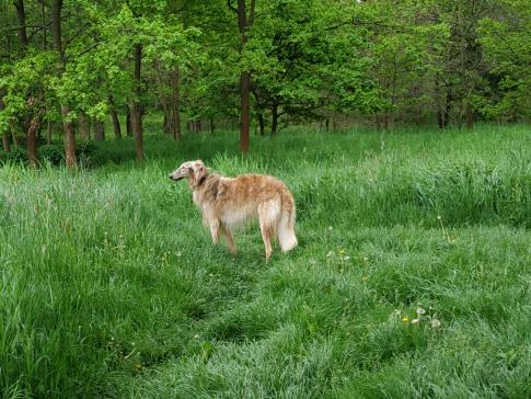 у меня новый пес - взят в Чехии, на зайца, европеец хренов, не реагирует - я бегу, а оно играется :)