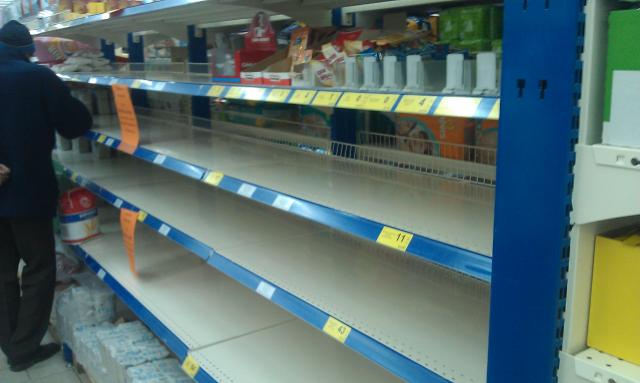 Ситуация в Украине остается стабильной, но напряженной. Есть несомненные успехи. Вслед за сахаром и мукой стали исчезать консервы. Огромным спросом пользуется сайра. Причем, сука, любая. Килька пока держится, но из последних сил. Теперь Алексей Гончаренко. Нет, забыли про шпроты. Их нет. То ли уехали обратно в Ригу, то ли раскупили. С подсолнечным маслом нормуль. Навалили прямо в проходах, чтобы видно было.
