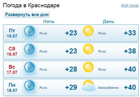 Учитывая тот факт, что Гисметео стабильно наёбывает на 3-4 градуса (сегодня в обед в тени было 36), к воскресенью будет адское горнило. Вспоминаю рекламу - "Если есть на свете рай - это Краснодарский край!", и подозреваю, что в аду все таки холодно :morning1: