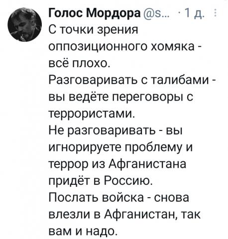 И скажу сразу: нет, это был не разгром талибов*. Потому, что самое боеспособное и злое их ядро ушло в Пакистан, вполне лояльный Америке, и два десятилетия неплохо там себя чувствовало, копя силы и готовясь к тому, что происходит сейчас. Попутно ещё и превратив огромный регион Пакистана в зону исламистского террористического кошмара. Я как-то писал большую статью об этом, так что я знаю, о чём говорю.