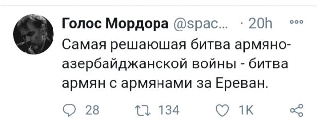 Пашинян сейчас говорит, что на такие условия Армения не могла согласиться без войны. Неправда, именно на такие условия согласилась Армения при Тер-Петросяне, после только что выигранной у Азербайджана войны. На такие условия не мог согласиться лично Никол Воваевич, поскольку, идя к власти, обещал армянам, что при помощи Запада заставит Азербайджан подписать мир на полной воле Еревана. Кроме того, он продолжал надеяться, что российское общественное мнение заставит Кремль занять жёсткую позицию в отношении Баку. Ведь участником конфликта была Турция, интересы которой в Закавказье, мягко говоря, с российскими не совсем совпадают. Поскольку Анкара была полностью на стороне Баку, по мнению армянских политиков, Россия должна была отзеркалить эту позицию и выступить на стороне Еревана. Простое сравнение российского и турецкого военных потенциалов показывало, что Армения опять победит — беспокоиться было не о чем.
