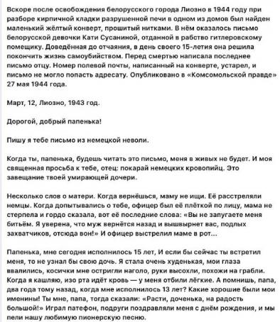 — Мне не понравились сразу несколько его фраз, в частности, «невинно убиенные немецкие солдаты». Как они могут быть невинно убиенными, если первыми напали? Пошли с мечом на нашу страну и от него же, как говорил Александр Невский, погибли. Десятниченко посочувствовал участи врага, который скончался в советских лагерях от «тяжелых условий». Это у нас были тяжелые условия?! Да по сравнению с тем, что творилось в немецком плену, у нас был рай! Пленных кормили, оказывали медицинскую помощь... Мне кажется, что речь этого школьника звучит предательски. Я не знаю, кто писал для него выступление, но, наверняка, учителя внесли сюда свою лепту. Таких педагогов я бы уволил, – прокомментировал Михаил Попов.