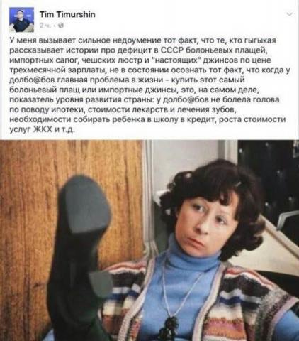 не хочет знать ни про очереди за "синей птицей", ни про мыло по талонам, ни про "спецснабжение" и золотую номенклатурную молодежь в "валютных" шмотках...