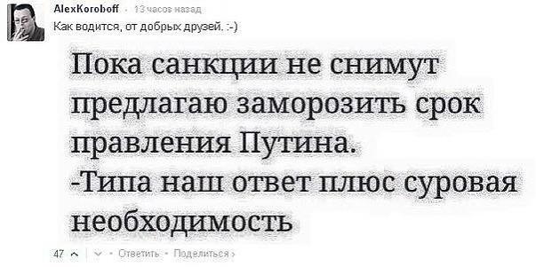 Встречаются за границей россиянин и украинец. Как дела, как жизнь? -Нормально, -А у тебя? -Я вот после вашей российской агрессии перестал надеяться на государство с его подачками, бордель открыл. Процветаю. -Да?! А сколько стоит у тебя в борделе минет? -100 гривен -А анальный секс? -300 гривен -А "классика", "классика" сколько стоит? "Классики" пока нет. Я один работаю.