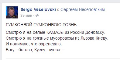 "Хлопци" его спрашивают: "Пэтро, ты за Украину, за йийи свободу виддаш коня?"