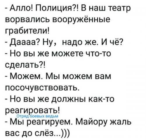 Ну и если полиция, прокуратура и суды у нас уже потихоньку отходят от решения вопросов, может, пора распустить их по домам? Как правильно подсказывают в интернетах — давайте уже повсеместно внедрим особые тройки в составе режиссёр, актёр и певец. Пусть они рассматривают уголовные дела и в силу своего небывалого интеллекта и мощнейшего образования решают — кого погубить, а кого приголубить.
