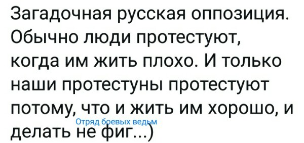 Но насчет "все идет по их сценарию" - да-да. Проебы МВД лучше всего списывать на то, что это все спланировал КГБ, супротив которого менты заведомо не играют и удар не держат. ;) Камрад, тут сразу еще вопрос, раз уж в "теорию заговора" ударяемся: чьи спецслужбы такое спланировали? См. майдан в Киеве, 2 издания, "арабская весна"... и сообщения о маршрутах московских "массовых прогулок" этого лета на сайте посольства США.