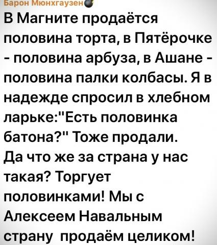 Вот и грустит Ксюха не о реальных вещах, не о качестве и количестве ассортимента, её плач - почти религиозный культ.Цитата: