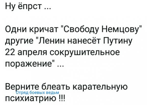 Вот смотрите идёт этот самый марш,Лозунги самые разные.Кто то про Немцова несёт,кто то про Украину,кто то требует с галеры гребцов команду выгнать, кто то против поправок в путинскую конституцию,кто то вообще идёт с плакатом продаю спаниелей недорого:wink:
