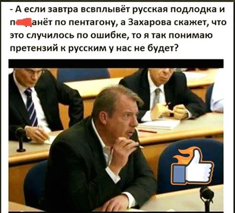 – Учитывая, что последний год в семье Обамы то и дело бывал президент Порошенко, младенец как две капли воды похож на Порошенко и генетическая экспертиза определила отцовство Порошенко, а президент Путин согласно данных со спутников находился от первой леди минимум за 20 тыс. км, вы все равно считаете виновным Путина? Но почему?
