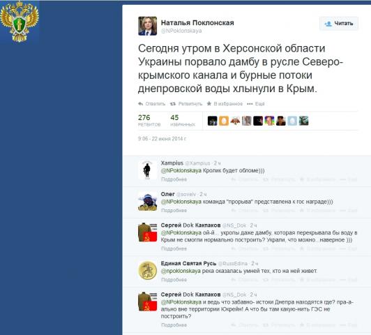 Сегодня утром в Херсонской области Украины под натиском воды прорвало наспех сооруженную украинцами дамбу в русле Северо-крымского канала и бурные потоки днепровской воды хлынули в Крым.