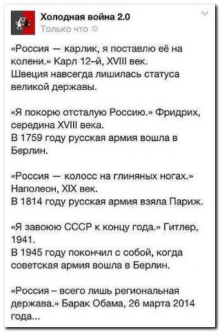 13. Нам не нужна помощь России.И, дай Бог, никогда не понадобится. Оставьте нас в покое. Не лезьте со своимы мыслями в чужую страну.