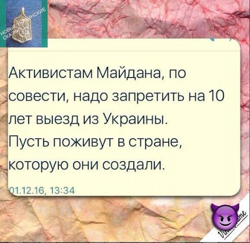 Активистам Майдана надо запретить на 10 лет выезд с Украины. Пусть живут в стране, которую они создали.