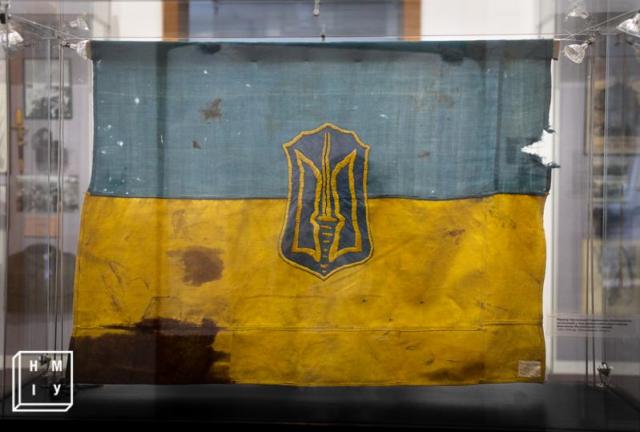 Боевой прапор украинских националистов. Подозрительно испачкан чем-то коричневым..