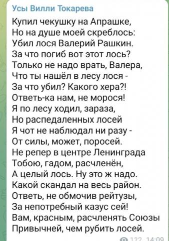Нож тоже рядом с лосем валялся. И вообще лося вот прямо таким и нашли, а Рашкин неуиноуны. :)