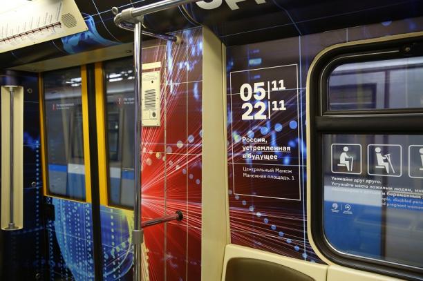 Поезд «Россия, устремленная в будущее» посвящен одноименной мультимедийной выставке. Ключевые темы выставки нашли отражение в оформлении вагонов поезда и демонстрируют -интеллектуальный, экономический и научный потенциал страны. Отправной точкой станет 2000 год. Посетители проследят, какой Россия была на рубеже веков, что сделано за последние годы, какие проблемы предстоит решить, как она изменится в ближайшее время и какое место займет в мире.
