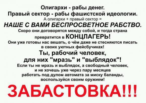 Киев взяла вооружённая банда. Юго-Восток сейчас продают с потрохами "всенародно избранные". Миллион негривен на счету гораздо приятнее сломанного ребра - это всякий "всенародно избранный" депутат скажет...