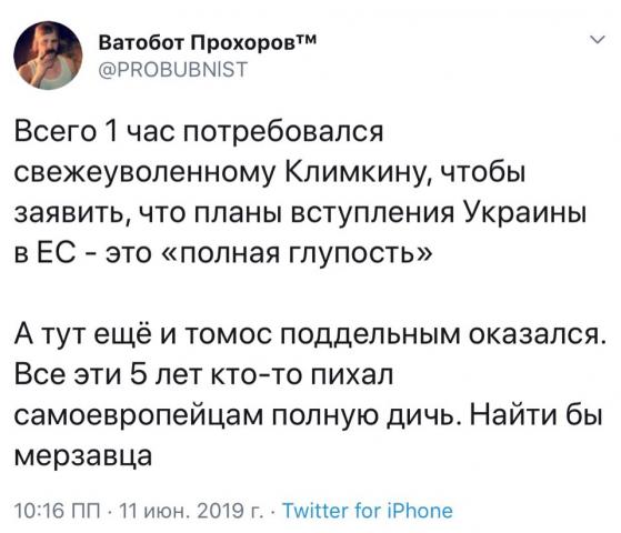 Зеленский. "Под вагоном территория, а в вагоне Директория"... :wink: - вполне УНРовский персонаж: еврейчик-популист, провозглашающий украинство, постоянно сбиваясь на русский язык, потому как мову толком так и не выучил. Пытается везде просунуть своих и всех наебать, ругает мрачное прошлое, обещает немеряно светлое будущее, но практического опыта управления чем-то посложнее собравшейся интеллигентно побухтеть компанией - не имеет. Издает множество деклараций о намерениях и манифестов, которые всерьез никто не выполняет. Превращает саму идею самостийной государственности в комедию. Надеется на то, что в случае с наступления с Востока за него вступятся то ли немцы, то ли Антанта. Где-то за ним маячат очень деловые люди, под развеселый шумок утягивающие все, что получится, желательно - в иностранной валюте, потому что у пана гетмана нэма золотого запасу, и за выпущенные им фантики в перспективе будут бить морду.
