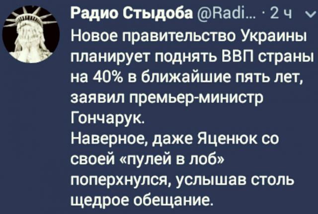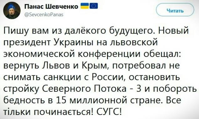 Весь день над Киевом кружили вертолёты, по улицам ездила бронетехника, взывая в громкоговорители: «Пан Луценко, пан Порошенко! Сдаёмсу! Просим представителей Украины принять нашу явку с повинной!»