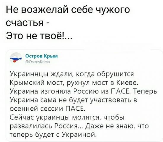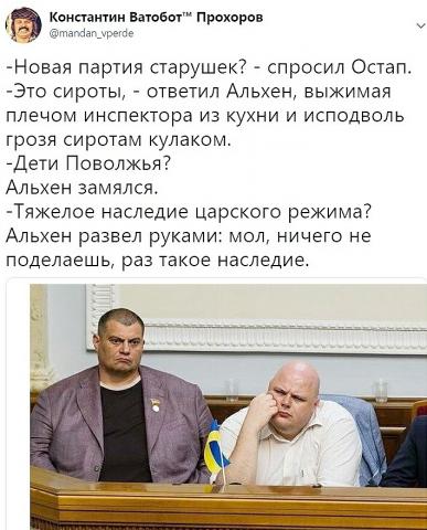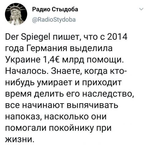 Через час к нему вышел вице-канцлер Штайнмайер, который сообщил, что фрау канцлерин засунула ампулу с цианистым кальцием в рот Порошенко и затем отравилась сама, приказав, напоследок, пустить воды Шпрее в берлинское метро. И что новая и свободная Германия рада видеть российских освободителей.