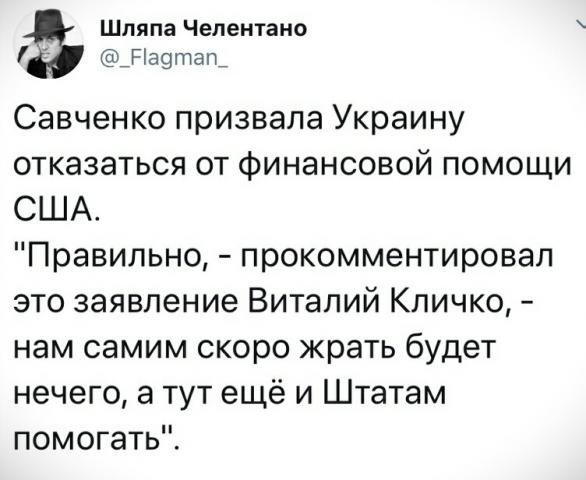 - Да я и раньше знал, что ты флюгер, - сказал циничный Георгий. - Образцовый политик Штатов. Россия всем нравится, так будешь хвалить. Как её пошли мочить со всех телеканалов, так ты тоже первый. Ну чо, охуенные щас отношения у нас просто. Я тобой лично недоволен, так и знай. И на второй срок тебя поддерживать не буду. Я и на первый не поддерживал, это у нас что-то народ прыгал.