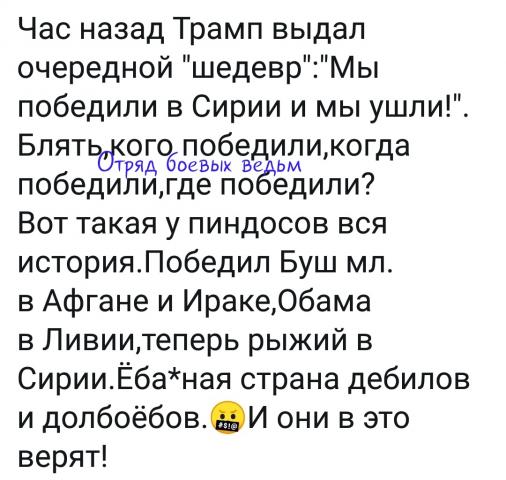 - Ну вот что ты за хуй? - сказал Георгий, отведав вискаря "Джек Дэниэлс". - Ты чего обещал, когда в президенты шёл? Улучшим отношения с Россией, будем ваще друзьями, всё такое прочее? И с чего ты начал? Ракетами по Сирии ударил. Я уже привык, что политики все трепло, но ты умеешь удивить мужик. Э, э! Пару огурцов мне оставь.