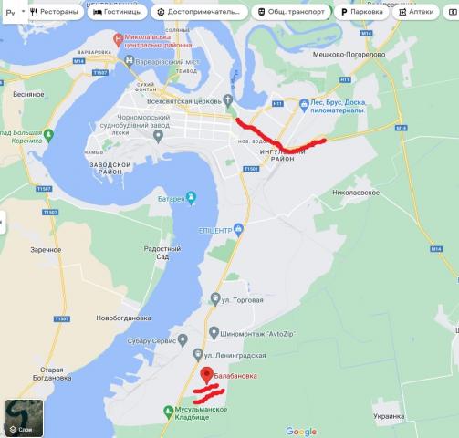 Мне лень делать картинки, но одну вставлю. Красная линия - это Херсонское шоссе. Балабановка подчёркнута.