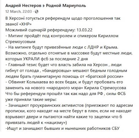 - по ссылке сообщение от Таруты на мове, из которого следует (если сопоставить все цифры), что "сбросили сверхмощную бомбу" сразу после того, как была опубликована информация о штабе и заложниках. И теперь - про диток и т.п., рятуйтэ Мариуполь, мы нэ зупынымося, мы знайдэм кожного...