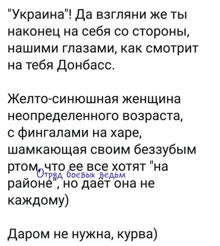 Зельц (не замечая вошедших) - А Лугандон пиздует пусть пусть в Россию!