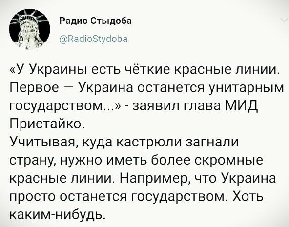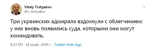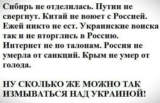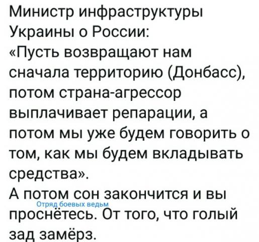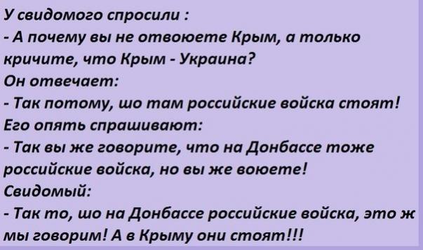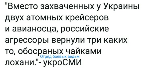 Начиналось так - верните нам Крым, потом - верните нам Донбасс, верните нам корабли, верните нам унитазы и в конце - верните нам трусы. Хотя я думаю это ещё не конец...